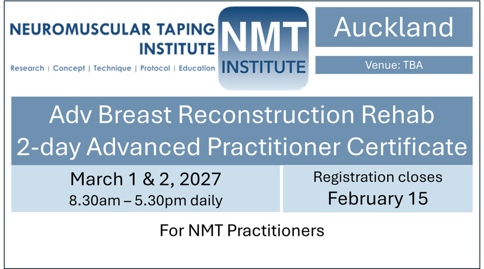Advanced training for NMT Practitioners in correct and effective taping protocols for rehabilitation after breast surgery, including breast reconstruction after cancer therapy.